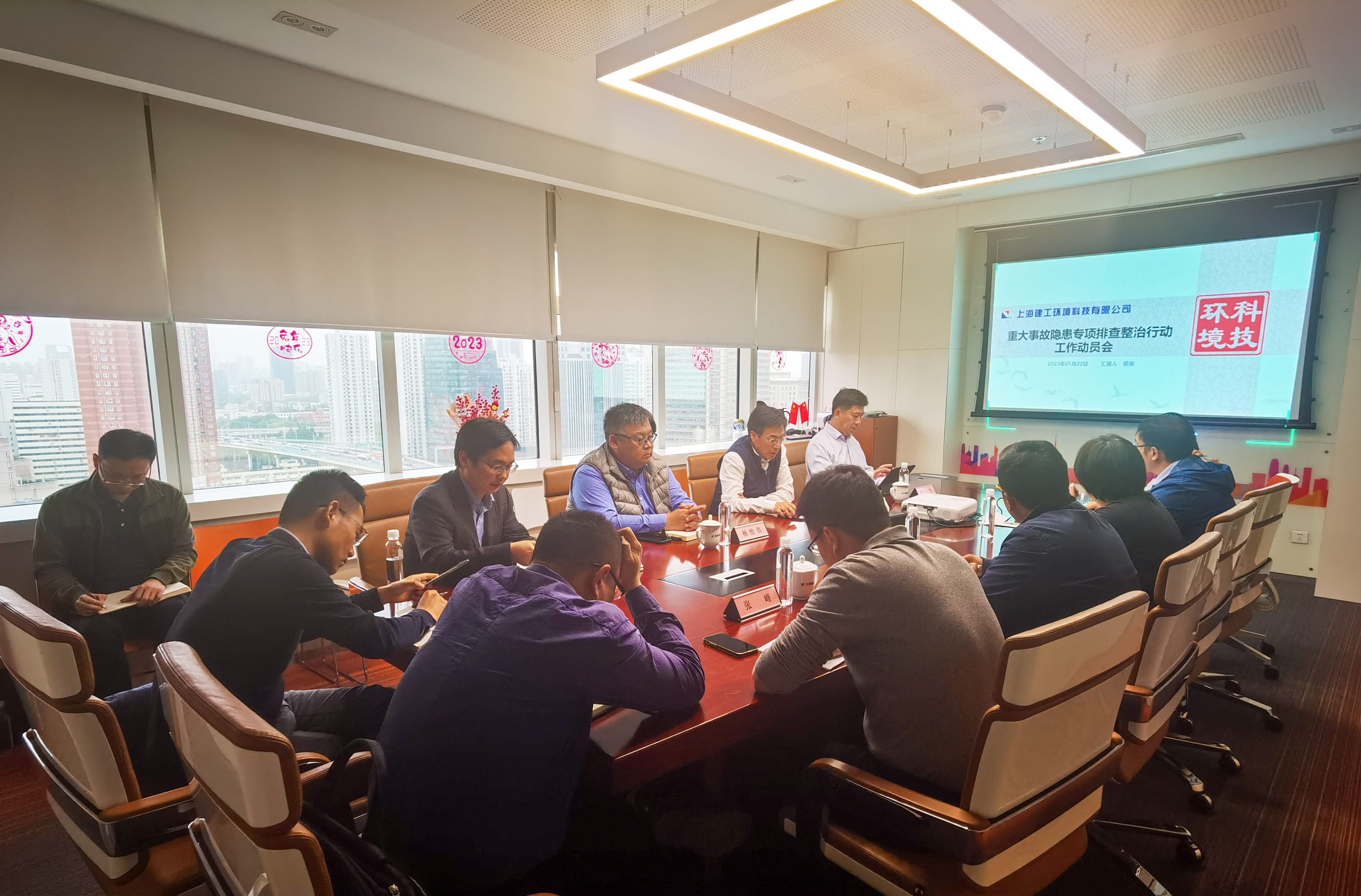 5月,环境科技召开重大事故隐患专项排查整治行动启动会暨“安全生产月”动员部署会,传达建工集团“5.11”重大事故隐患专项排查整治行动动员部署会议精神,宣贯《环境科技2023年“安全生产月”活动方案》,明确各项具体工作要求。经营运营中心牵头组织各级领导班子、安全管理人员集中观看安全警示教育片,与会梳理与讲解了房屋市政工程生产安全重大事故隐患判定标准(2022版)以及化工和危险化学品生产经营单位重大生产安全事故隐患判定标准。为进一步落实各层级安全生产责任制,做到把安全生产与其他业务工作同研究、同部署、同督促、同检查、同考核、同问责,组织各事业部党政负责人完成2023年安全生产、消防安全工作责任书签订。 安全宣教,知识培训,营造良好安全文化氛围 悬挂活动宣传标语横幅、海报